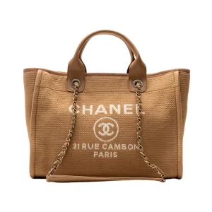 C Small Shopping Bag Mixed Fabric Calfskin Beige Ghw